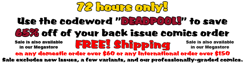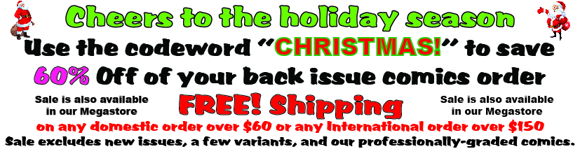 Mile High Comics is America's Largest Comics Dealer, with over 10 million comics and over 300,000 Comics Trade Paperbacks and Hardbacks in stock! If you are looking for any new or back issue comic book or comics magazine, Mile High Comics will either have it available for you right now at bargain prices, or let you sign up for a free e-mail notification when we do get it in stock via our wonderful Want List program. Browse through our incredible website for quick and easy one-stop shopping for all comics, comic books, and comics trade paperbacks ever published! To find any title in our huge database of 500,000+ different issues, just type in any keyword or combination of keywords (such as Batman, Star Trek, or Amazing Spider-Man) and our blazingly fast search engine will then provide you with an array of possible options, ranked by popularity. You can also engage our Advanced Search which will allow you to search by individual publisher, genre, and/or by alphabetic listing. You can also sign up here to receive our weekly e-mail Newsletter filled with comics news, special discount codes, and free items offers. Sign up for our a OneID (it only takes a few seconds to create your personal password...) to use our free Want List feature. We purchase approximately 100,000 comics each month at conventions and via our Online Buying Program, so our inventory changes every single day. Mile High Comics became America's Largest Comics Dealer by providing great service to over one million satisfied comics buyers since 1969. We make shopping for comics quick, fun, and easy for everyone! Our Most Popular TitlesSPIDER-MAN (1963) - X-MEN (1963) - BATMAN (1940) - FANTASTIC FOUR (1961) - AVENGERS (1963) - HULK (1962) - AMAZING SPIDER-MAN (1999) - X-MEN (1991) - DAREDEVIL (1964) - ULTIMATE SPIDER-MAN (2000) - ACTION COMICS (1938) - DETECTIVE COMICS (1937) - IRON MAN (1968) - WOLVERINE (1988) - THOR (1962) - CAPTAIN AMERICA (1968) - SUPERMAN (1986) - ULTIMATE X-MEN (2000) - SUPERMAN (1939) - SPAWN - JUSTICE LEAGUE OF AMERICA (1960) - DAREDEVIL (1998) - HULK (1999) - SPIDER-MAN (1990) - CONAN (1970) - AVENGERS (1997) - FANTASTIC FOUR (1997) - GI JOE - FLASH (1987) - ADVENTURES OF SUPERMAN (1987) - NEW AVENGERS (2004) - WONDER WOMAN (1987) - GREEN LANTERN (1960) - X-FACTOR (1986) - WOLVERINE (2003) - GREEN LANTERN (1990) - SUPERMAN/BATMAN (2003) - PETER PARKER (1976) - JLA (1996) - ASTONISHING X-MEN (2004) - WEB OF SPIDER-MAN (1985) - MARVEL TEAM-UP (1972) - TEEN TITANS (1980) - NEW MUTANTS - CAPTAIN AMERICA (2004) - DEFENDERS (1972) - GHOST RIDER (1973) - FLASH (1959) - THOR (1998) - TEEN TITANS (2003) |