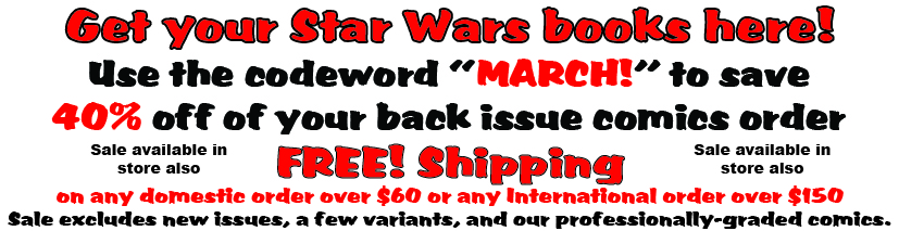 Mile High Comics is America's Largest Comics Dealer, with over 10 million comics and over 300,000 Comics Trade Paperbacks and Hardbacks in stock! If you are looking for any new or back issue comic book or comics magazine, Mile High Comics will either have it available for you right now at bargain prices, or let you sign up for a free e-mail notification when we do get it in stock via our wonderful Want List program. Browse through our incredible website for quick and easy one-stop shopping for all comics, comic books, and comics trade paperbacks ever published! To find any title in our huge database of 500,000+ different issues, just type in any keyword or combination of keywords (such as Batman, Star Trek, or Amazing Spider-Man) and our blazingly fast search engine will then provide you with an array of possible options, ranked by popularity. You can also engage our Advanced Search which will allow you to search by individual publisher, genre, and/or by alphabetic listing. You can also sign up here to receive our weekly e-mail Newsletter filled with comics news, special discount codes, and free items offers. Sign up for our a OneID (it only takes a few seconds to create your personal password...) to use our free Want List feature. We purchase approximately 100,000 comics each month at conventions and via our Online Buying Program, so our inventory changes every single day. Mile High Comics became America's Largest Comics Dealer by providing great service to over one million satisfied comics buyers since 1969. We make shopping for comics quick, fun, and easy for everyone! Our Most Popular TitlesSPIDER-MAN (1963) - X-MEN (1963) - BATMAN (1940) - FANTASTIC FOUR (1961) - AVENGERS (1963) - HULK (1962) - AMAZING SPIDER-MAN (1999) - X-MEN (1991) - DAREDEVIL (1964) - ULTIMATE SPIDER-MAN (2000) - ACTION COMICS (1938) - DETECTIVE COMICS (1937) - IRON MAN (1968) - WOLVERINE (1988) - THOR (1962) - CAPTAIN AMERICA (1968) - SUPERMAN (1986) - ULTIMATE X-MEN (2000) - SUPERMAN (1939) - SPAWN - JUSTICE LEAGUE OF AMERICA (1960) - DAREDEVIL (1998) - HULK (1999) - SPIDER-MAN (1990) - CONAN (1970) - AVENGERS (1997) - FANTASTIC FOUR (1997) - GI JOE - FLASH (1987) - ADVENTURES OF SUPERMAN (1987) - NEW AVENGERS (2004) - WONDER WOMAN (1987) - GREEN LANTERN (1960) - X-FACTOR (1986) - WOLVERINE (2003) - GREEN LANTERN (1990) - SUPERMAN/BATMAN (2003) - PETER PARKER (1976) - JLA (1996) - ASTONISHING X-MEN (2004) - WEB OF SPIDER-MAN (1985) - MARVEL TEAM-UP (1972) - TEEN TITANS (1980) - NEW MUTANTS - CAPTAIN AMERICA (2004) - DEFENDERS (1972) - GHOST RIDER (1973) - FLASH (1959) - THOR (1998) - TEEN TITANS (2003) |