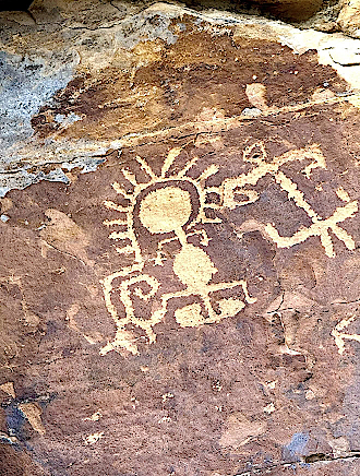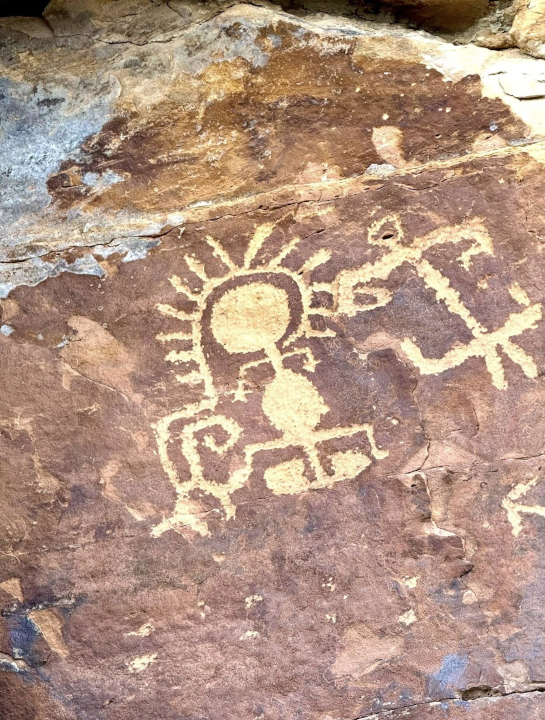perched on the side of a steep canyon. Many of the artworks were carved 10’-15’ above the surface, so ladders must have