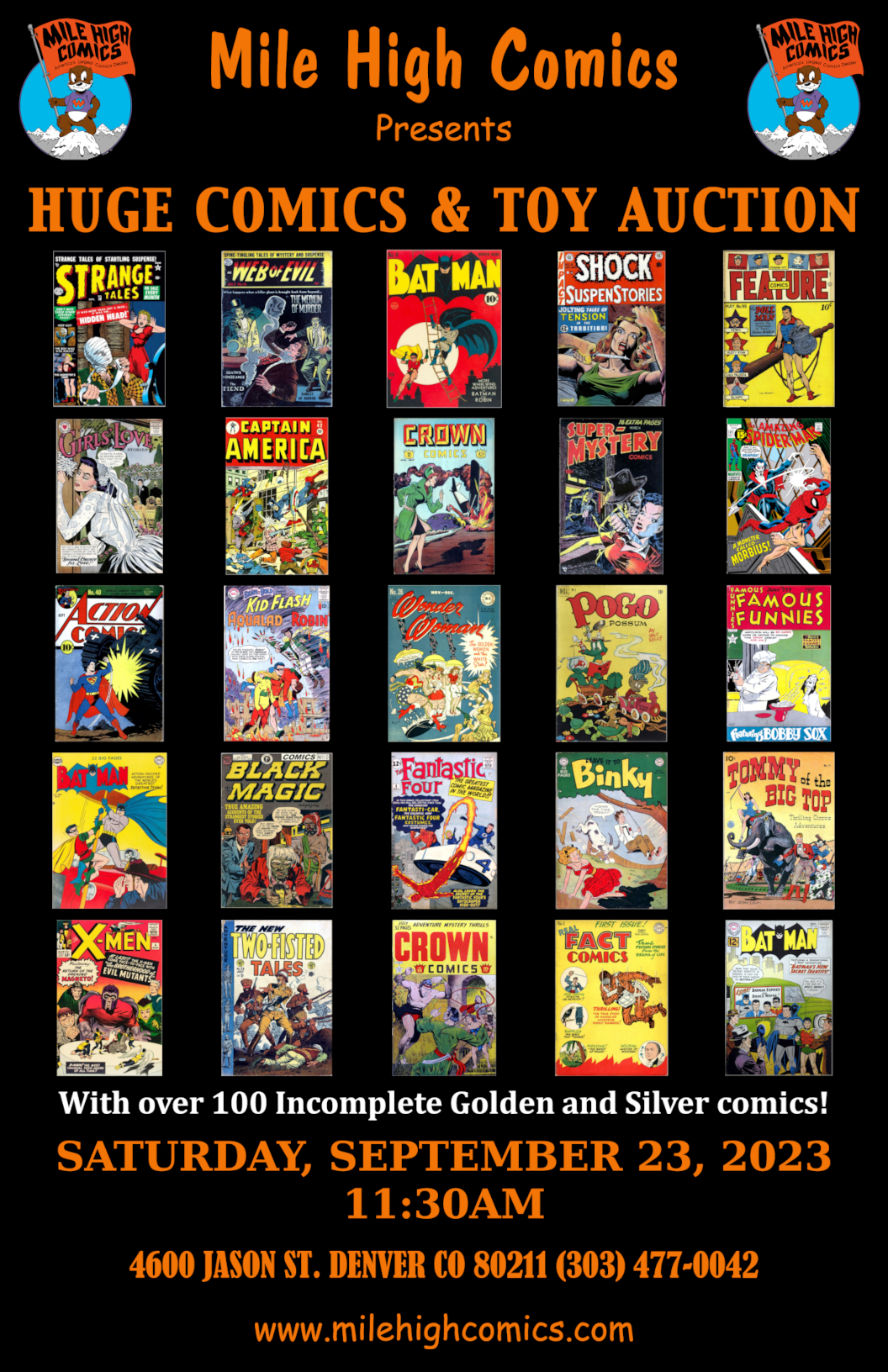 would like to bid on, give her a call at 303-455-2659, or write to her via pamb@milehighcomics.com. Our September