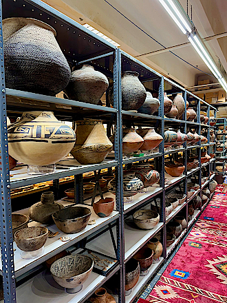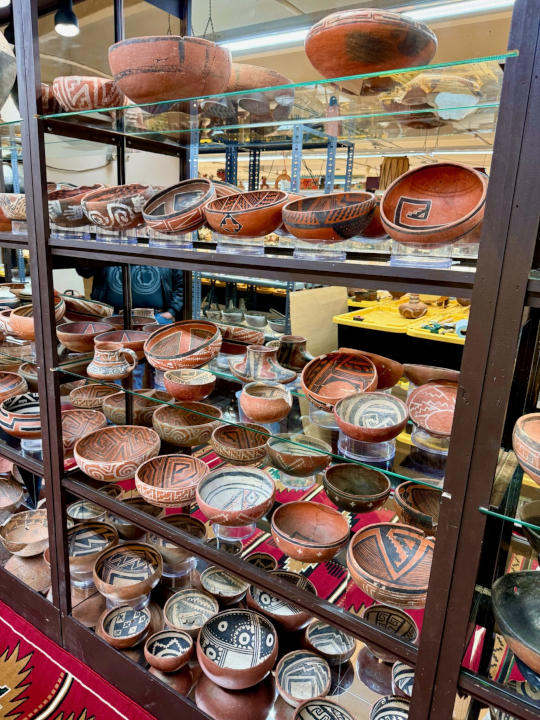 A small fraction of Chuck's pre-contact pottery in his Pueblo Treasures Museum